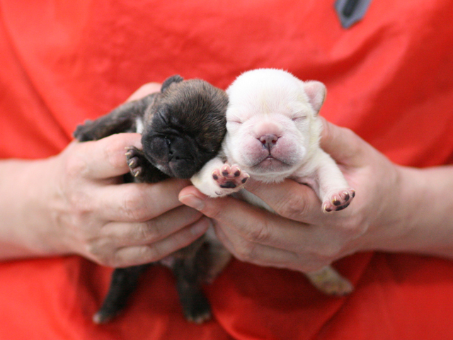 今日は4月28日生のパグと、つい先日5月11日生のフレンチブルドッグの写真を紹介します☆