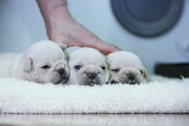 もうあと1〜2週間で耳が立ち、目がパッチリ、体ずんぐりむっくり、何とも言えないフレブル特有の可愛らしさが出てきます。