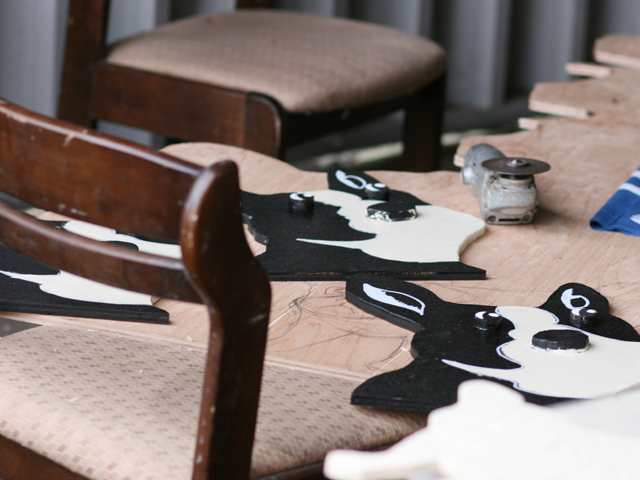 何買ってくるんだろう、と思っていたら大きな木版とペンキ。