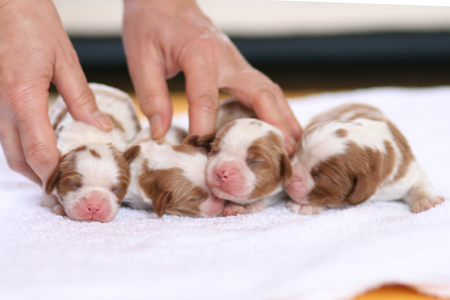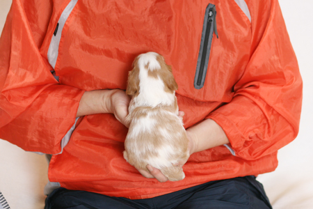 茶色い毛の部分は成長と共に濃くなっていくことと思います。(これはキャバリア・ブレンハイムの特徴です)